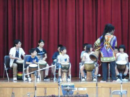 舞台の上のジャンベとフロアにいる子の手拍子とが合わさって、またまた素敵な音楽が生まれました。