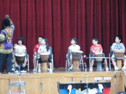 そのあと、各学級の代表者が、ジャンベを奏でました。