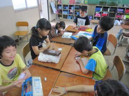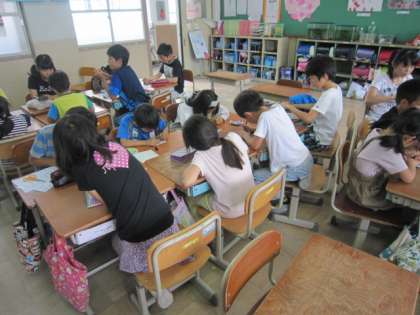 にこにこグループ(たてわり)の顔合わせがありました。自己紹介のあと,みんなでグループカードを作りました。今年1年みんなで協力して活動しましょう。