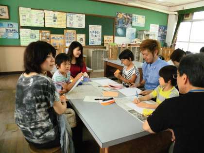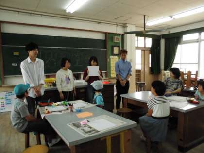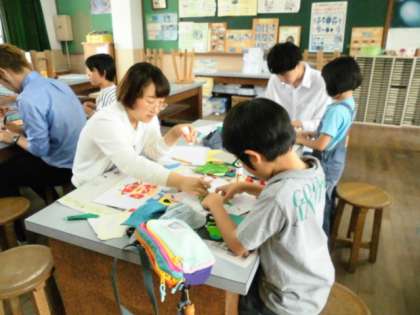 今日のサタデースクールは、同支社大学の学生さんがこられてちぎり絵を教えてくださいました。