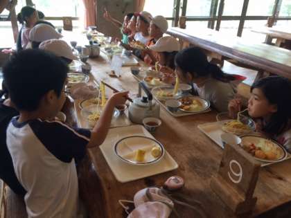これから、何度もお世話になる食堂。グループで、まとまって食べます。