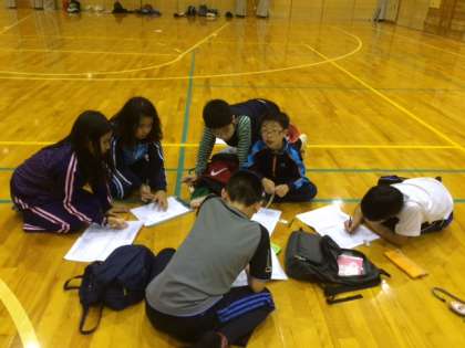 グループで反省会をしています。