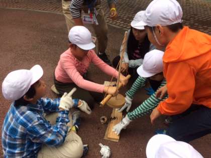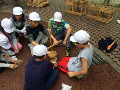 力を合わせて、火をおこします。