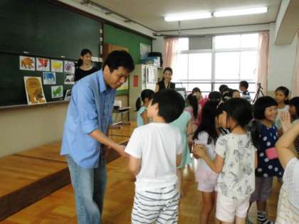 外国からのボランティアさんに来ていただき、みんなが大好きなBrown Bearの絵本からゲームをしました。