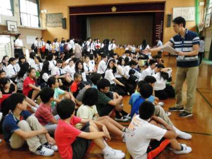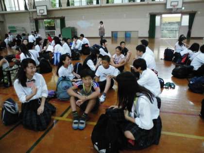 先に、体育館で待っている6年生。