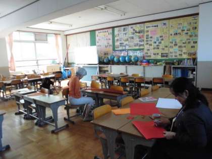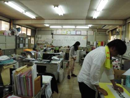 環境部は、何か所かに分かれて英語の掲示物を作成しました。