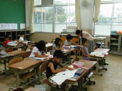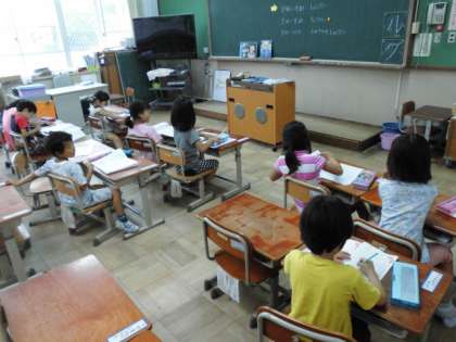 朝からの雨にもかかわらず、夏学習に参加した子どもたち。