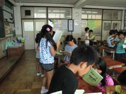 中学年は、読んだ本の交流をしたり、楽しくお話したりしています。