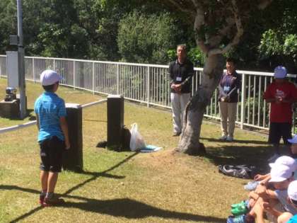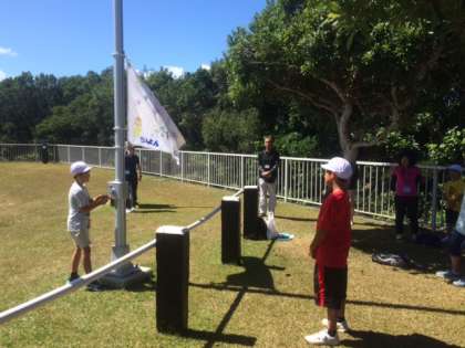 昼食後、第一営火場で入所式を行いました。司会、旗上げ、誓いの言葉など、しっかりと係の役目を果たしました。