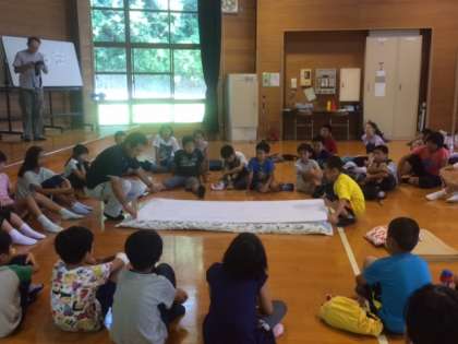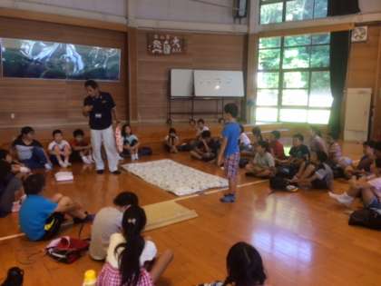みさきのトイレの使い方や寝具の使い方を習いました。進んでたくさんの子が説明の手伝いに手を上げていました。