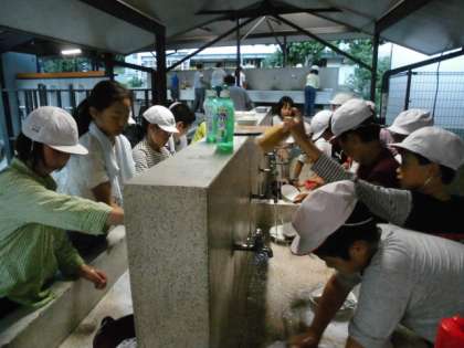 とくに、お鍋はなかなか合格がでずに、班全員で交代に洗って、苦労しましたが、おかげでピカピカになりました。ご苦労様!