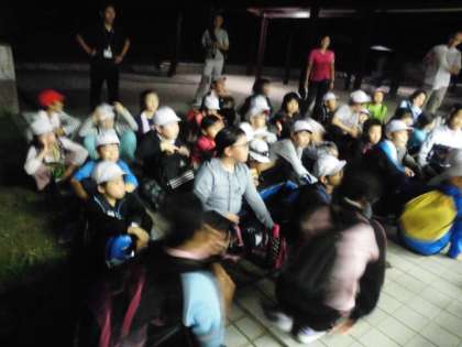 野外炊事のあとは、お風呂に入って、夜の活動を行いました。