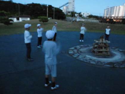 みさきの家の先生に、火の子はトーチの持ち方を教わっています。