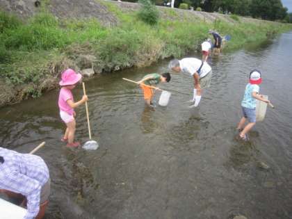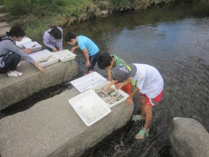 サタデースクールで鴨川たんけんを行いました。保健環境研究所の方より,まず川の中の生き物の採集の仕方を教えていただき,子どもたちは鴨川に入りました。生き生きと子どもたちは採集活動をしました。最後に川の生き物を分類し,その生き物から川の様子を知ることができました。保健環境研究所の皆さん,朝早くからご指導ありがとうございました。