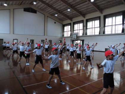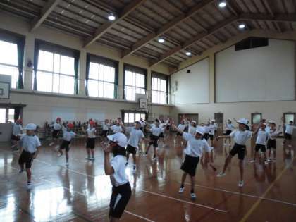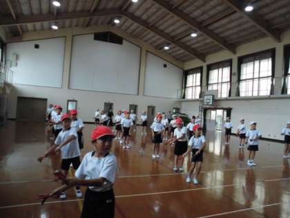 体育館では、4年生が、鳴子を使って踊りの練習をしていました。