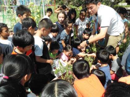 今日は,明日の校外学習に向けてみんなで育てている野菜の収穫をしました。