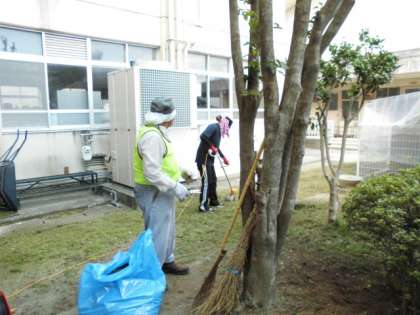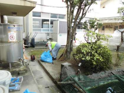 今日は、朝から、本校の用務員と地域のボランティアの方とで、本館の池のまわりをきれいにしてくださいました。