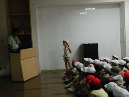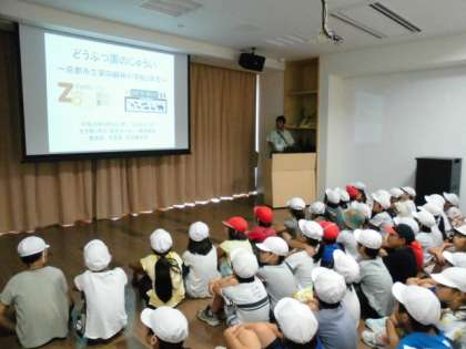 最後は、部屋の中で、国語の「じゅう医のしごと」の関連で、実際に動物園の獣医さんのお話を聞きました。ヘビの手術をしているところやキリンの出産の様子などのスライドも見せてもらいました。そのあと、質問コーナーでは、たくさんの質問をしていました。