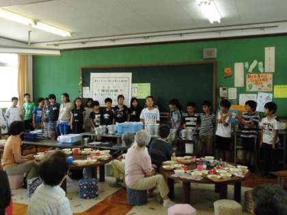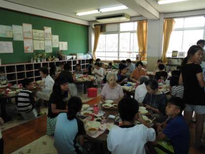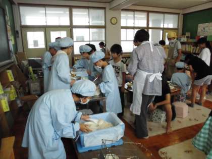 さすが、5年生。自分たちと地域の方の分とを手分けして、てきぱきと配膳していました。