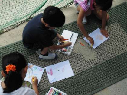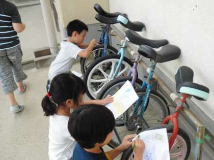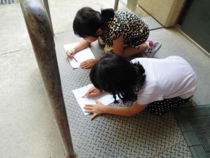 図工の時間の続き。今度は学校にあるでこぼこしたものを探しました。