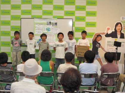 びっくりエコ100選の発表に4年生が参加しました。自分たちにできること,やっていることについての児童自身の力による発表でした。マイクも使わず,大きな聞こえる声で,メモや台本など一切なく,自分で考えた自分の言葉での発表でした。