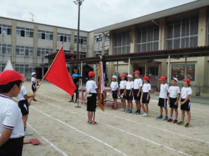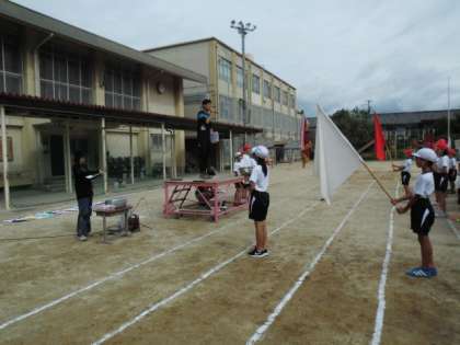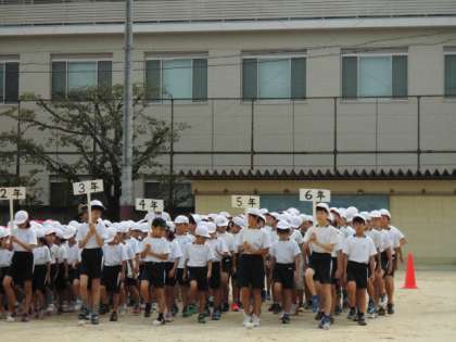 まず、初めは入場行進からです。音楽を聴いて笛の合図で進んでいきます。