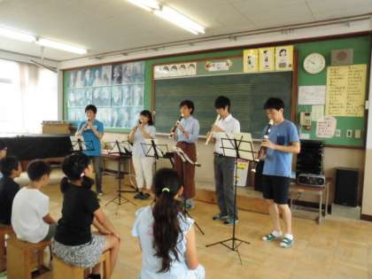 また、自分たちでもスタッカートの演奏を工夫し、最後には、学生さんたちと一緒に演奏しました。