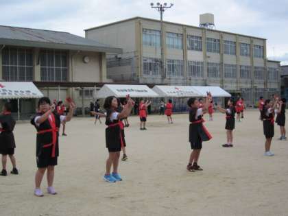 雨もすっかりあがって、運動場で心置きなく最後の練習に取り組めました。