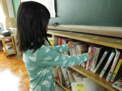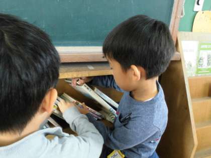 わくわくルームへ行って,おすすめの本を一人1冊選びました。しばらく教室に置いておきます。早速,友達の選んだ本をじっくり読む姿が見られました。