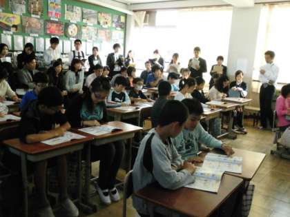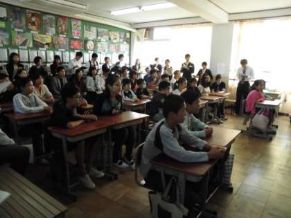 昨日の準備の通り、今日の公開授業には、総勢約50名の先生方が来られました。