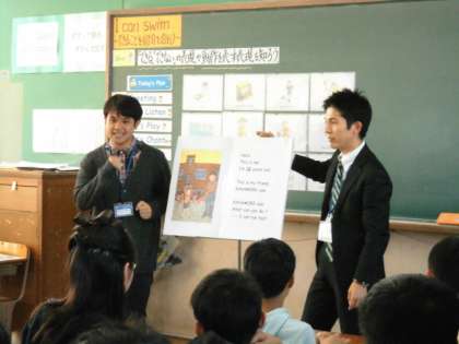 オリジナルの絵本や、クイズをつかってALTの先生と一緒に学習しました。