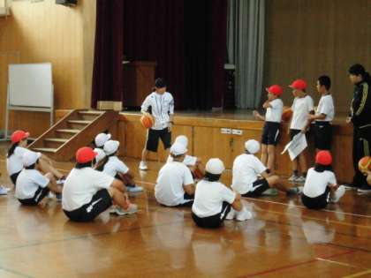 バスケットボールクラブは、先生の見本をみているところ。