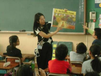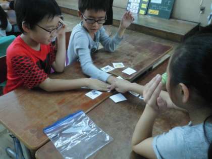 本校の研究主任の先生と一緒に英語活動の学習をしました。In the Autumn Forestというたくさんの動物が出てくる楽しい本の読み聞かせを聞いた後,みんなで協力してゲームを楽しみました。