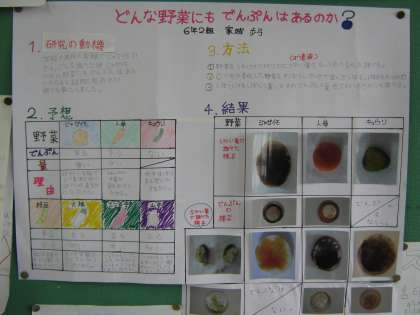子どもたちそれぞれが,興味関心から自分自身で調べたり,観察したりして分かったことを深めた自由研究ばかりです。イラストや写真,また実物もいっしょに掲示されていてとても分かりやすいです。