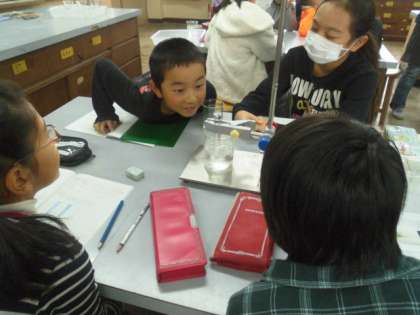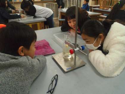 水を温めたり,冷やしたりすると体積はどうなるのだろうか・・・。実際に実験をしてみて確かめました。温めると少し水面が膨らみ,冷やすと少し水面が下がったいました。