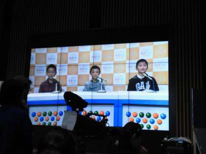 カメラの操作の仕方や,画面の切替え,CGの操作,カメラに向かって話す,すべて初めてでしたが,スタッフの方の話をよく聞き,動いていました。テレビってこんな風にできているんだとみんな驚いていました。