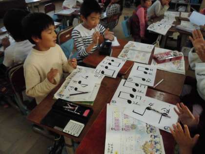 最後は、班で発表し合い、楽しいお祭りの音楽を楽しみました。