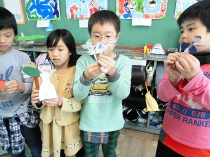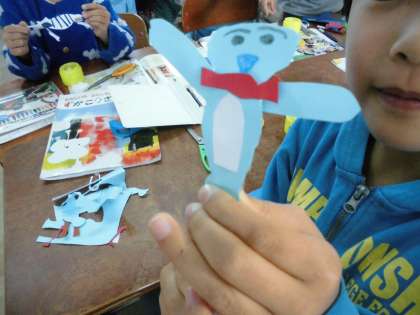 今日は、その動く仕組みから想像したことを画用紙を使い形にしました。みんな、すてきな動くおもちゃができました。ぴくぴくした動きがかわいかったです。