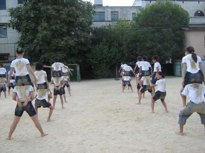 毎日,砂まみれになりながら,組体操の練習に取り組んでいます。