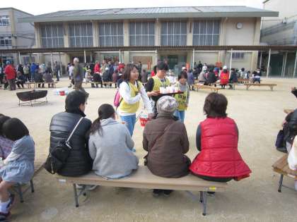 「防災の集い」が第四錦林小学校でありました。災害時に備えての地域の皆さんの訓練です。炊き出し訓練では,四錦小の児童も「ボランティアキッズ」として,お茶を配るなど協力をしました。