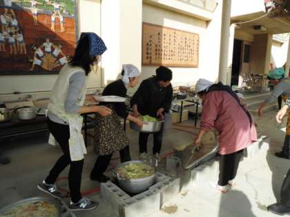 運動場では、炊き出し訓練ともちつきが行われました。