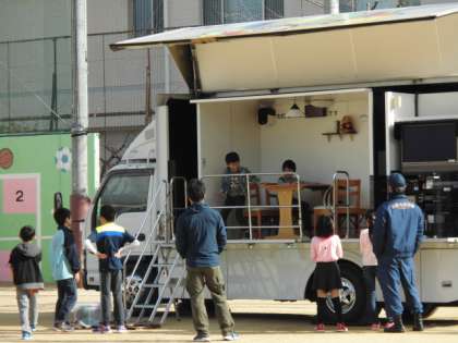子どもたちも、ボランティアとしてお手伝いしたり、起震車にのったりして参加していました。