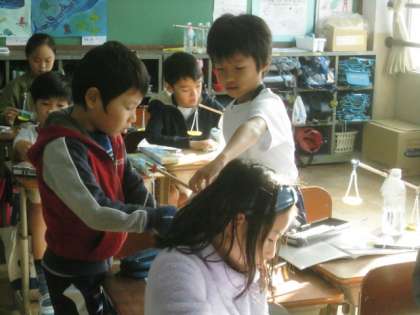 理科の学習でてんびんばかりを作りました。身のまわりにある物の重さを予想して,はかりに載せて比べます。今日は,粘土やアルミホイルの形を変えても重さは変わらないということを学習しました。