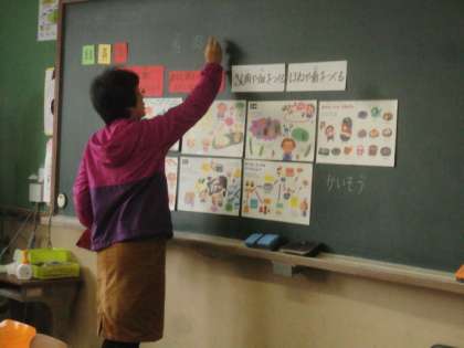 食の学習がありました。今回は「赤の食品」について学習しました。赤の食品は血や肉になる働きを持つ食品で,魚や肉,大豆などが含まれます。その他にも,わかめやのりなどの海藻類も赤の食品に分類されることを聞いて,子どもたちはとても驚いていました。