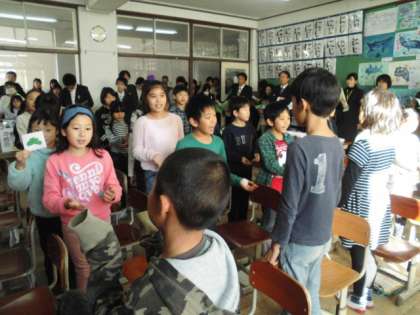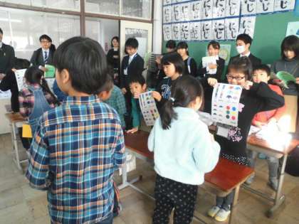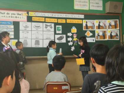 研究発表会がありました。教室の中にたくさんの人がいることに,とても緊張した様子でしたが,英語活動の学習が始まると"What do you like?"や"I like 〜"など,たくさんの英語を積極的に使って,とても楽しそうにコミュニケーション活動に取り組んでいました。