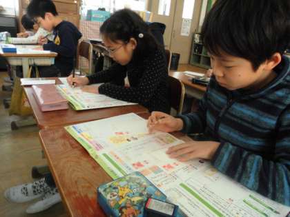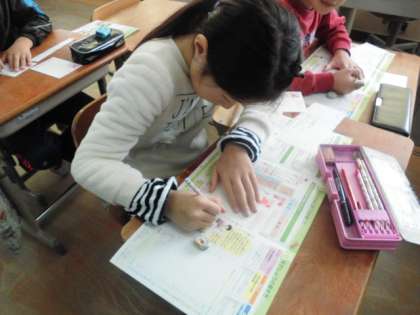 地域の方へ配る年賀状を書きました。今年度は2年生と4年生が担当します。