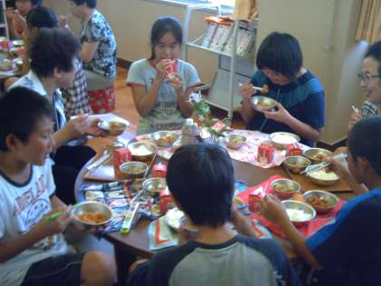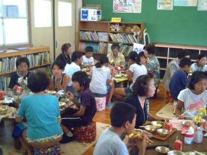 最初にリコーダーの曲を披露した後,給食を一緒にいただきました。