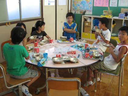 グループで3組の教室にきてもらい,一緒に給食を食べました。昼休みはカード遊びをしました。給食のときは静かでしたが,一緒にカード遊びをするとだんだん声も出てきて楽しい時間が持てました。