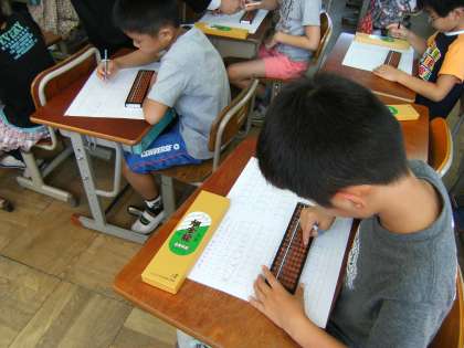 子どもたちが楽しみにしていた「そろばん学習」が本日も実施できました。前回の復習を兼ねて,指をスムーズに動かす練習をして,計算練習に入りました。すぐに,前回のことを思いだし,そろばんの玉を動かす音が響きました。今回は,「10になる友だちみつけ」という集中力を養う学習も取り入れていただきました。45分間を集中して計算し,さらに「もう少し時間があったらもっとできたのに。」とつぶやいていた児童もいました。「まだやりたい。もっとやりたい」という思いを今後も大切にしていきたいです。