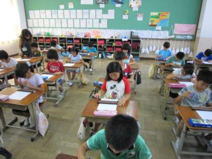 誰も,私語をする子どもはいません。45分間,熱中し続けています。